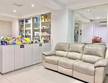 Ruang tunggu dilengkapi dengan fasilitas pendukung untuk memastikan kenyamanan pasien saat menunggu giliran perawatan.